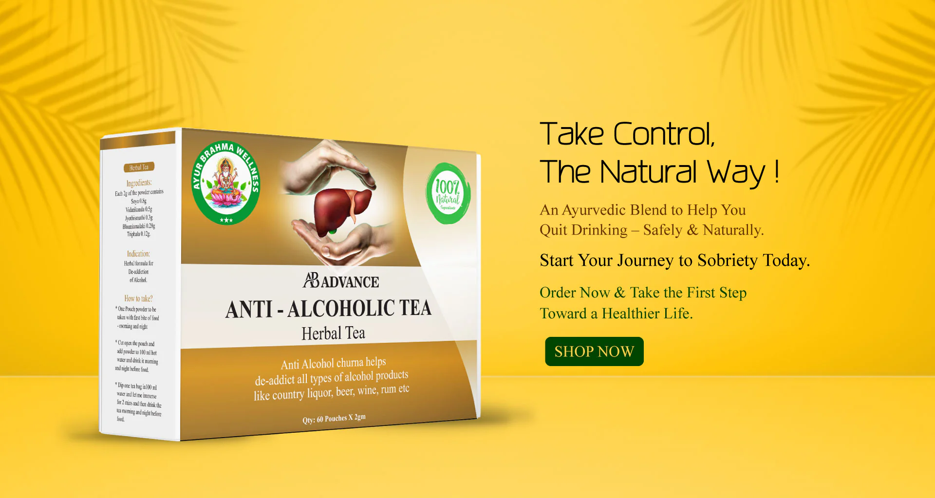 AB Advance Anti-Alcoholic Tea is a powerful herbal blend formulated to assist in overcoming alcohol dependence. Known as Anti-Alcohol Churna, this tea supports the body’s natural detox process and helps reduce cravings for alcoholic products such as country liquor, beer, wine, rum, and more. A safe and natural way to start your journey toward an alcohol-free lifestyle.